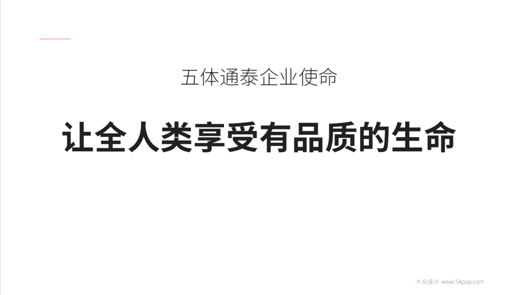 五体通泰是我们服务的一家互联网时代全新的理疗产品服务平台,该平台几乎全面覆盖了人体保健、治疗所需的理疗产品及相关服务。经过多次的走访及调研,我们为企业撰写了使命与愿景。
