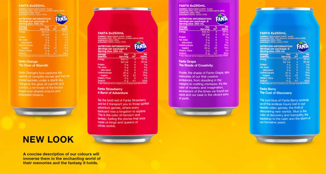可口可乐公司的果味汽水品牌芬达(Fanta)最近与与彩通(PANTONE)合作推出了限量版饮料系列。每种汽水味都对应一种鲜艳的颜色,包括黄色、蓝色、粉色等。此外,还推出了周边商品。据了解,该系列产品的受众目标主要为 Z 世代。